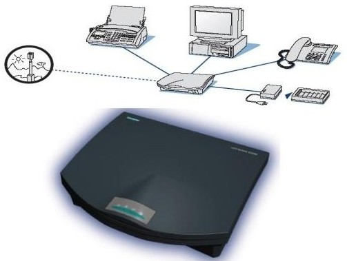 Zur Herstellung von Fernsprechverbindungen wird ein Mobilfunkterminal (Siemens Combiset)